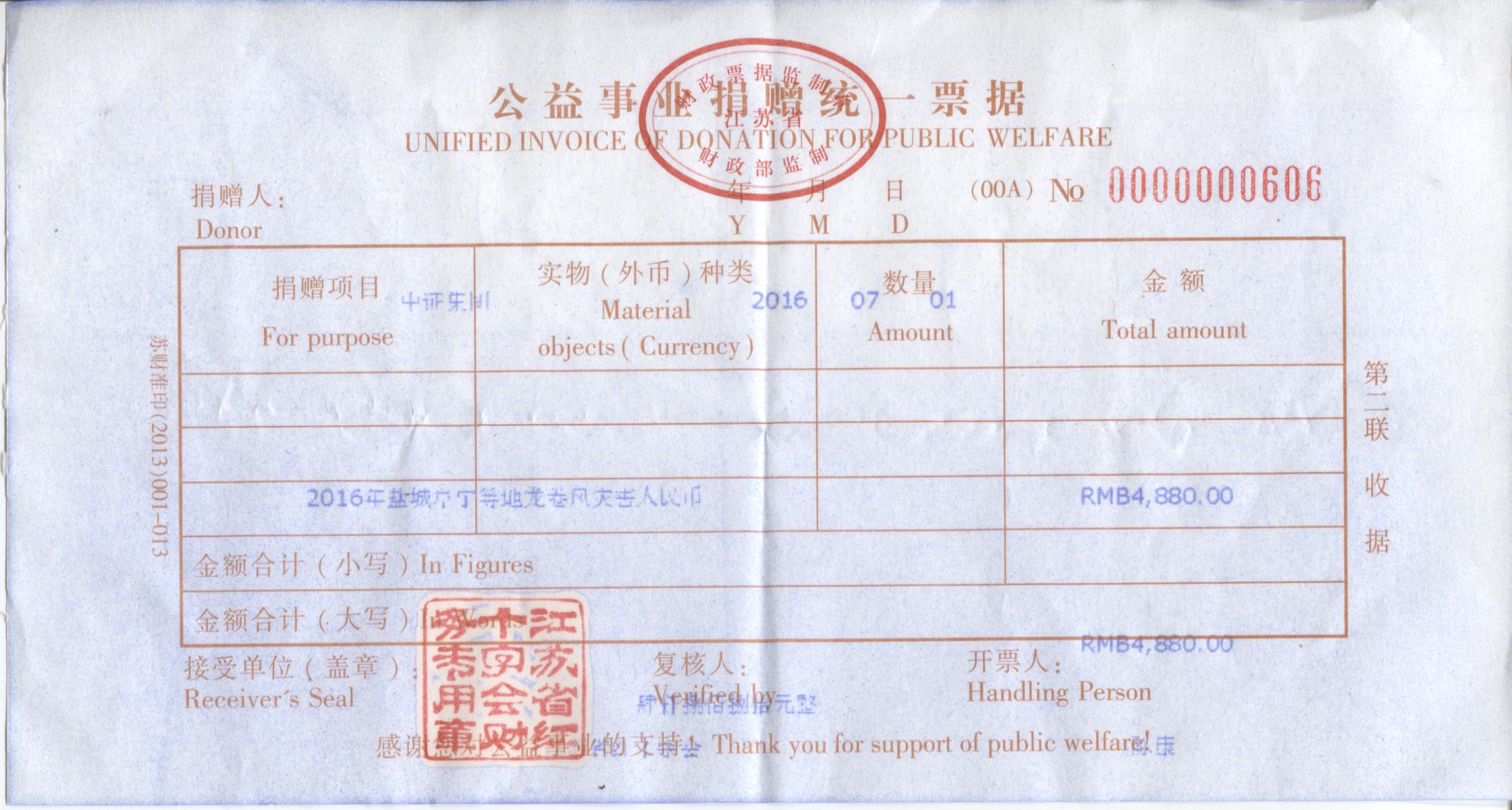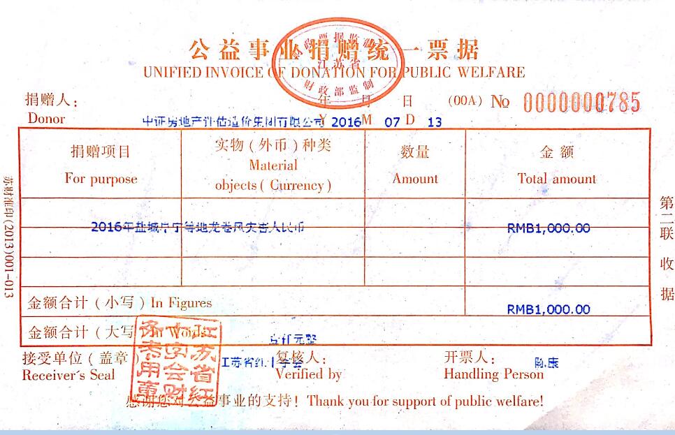 中證集團全體員工向鹽城市阜寧縣災區人民捐款5800